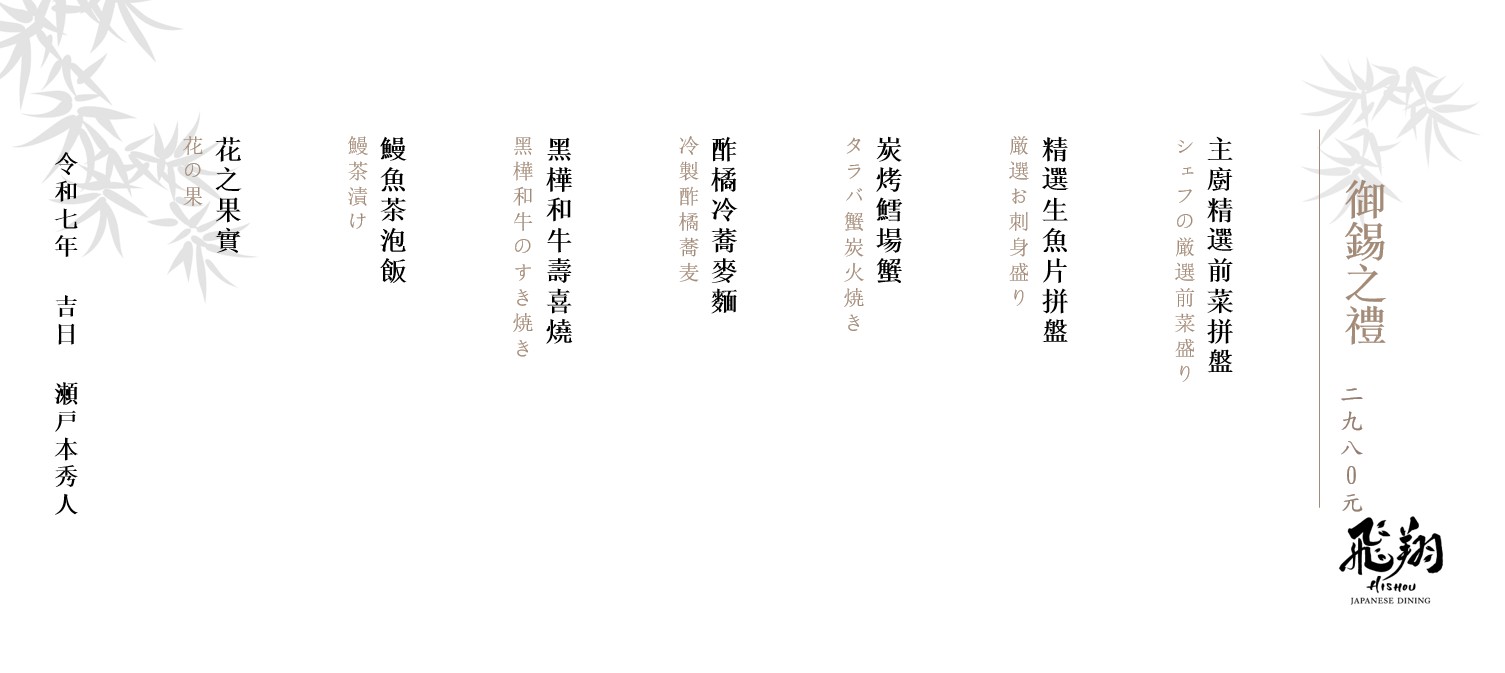 ・Minimum Spend: Lunch – NT$5,000 / Dinner – NT$8,000