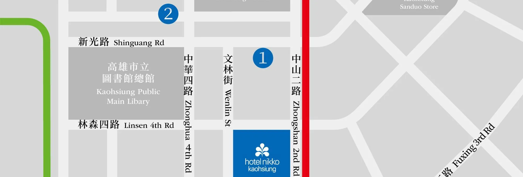 (1) Lin Sen Wen Lin Parking Lot: approximately 1-minute walk from the hotel. Vehicles must exit within 15 minutes after validation.