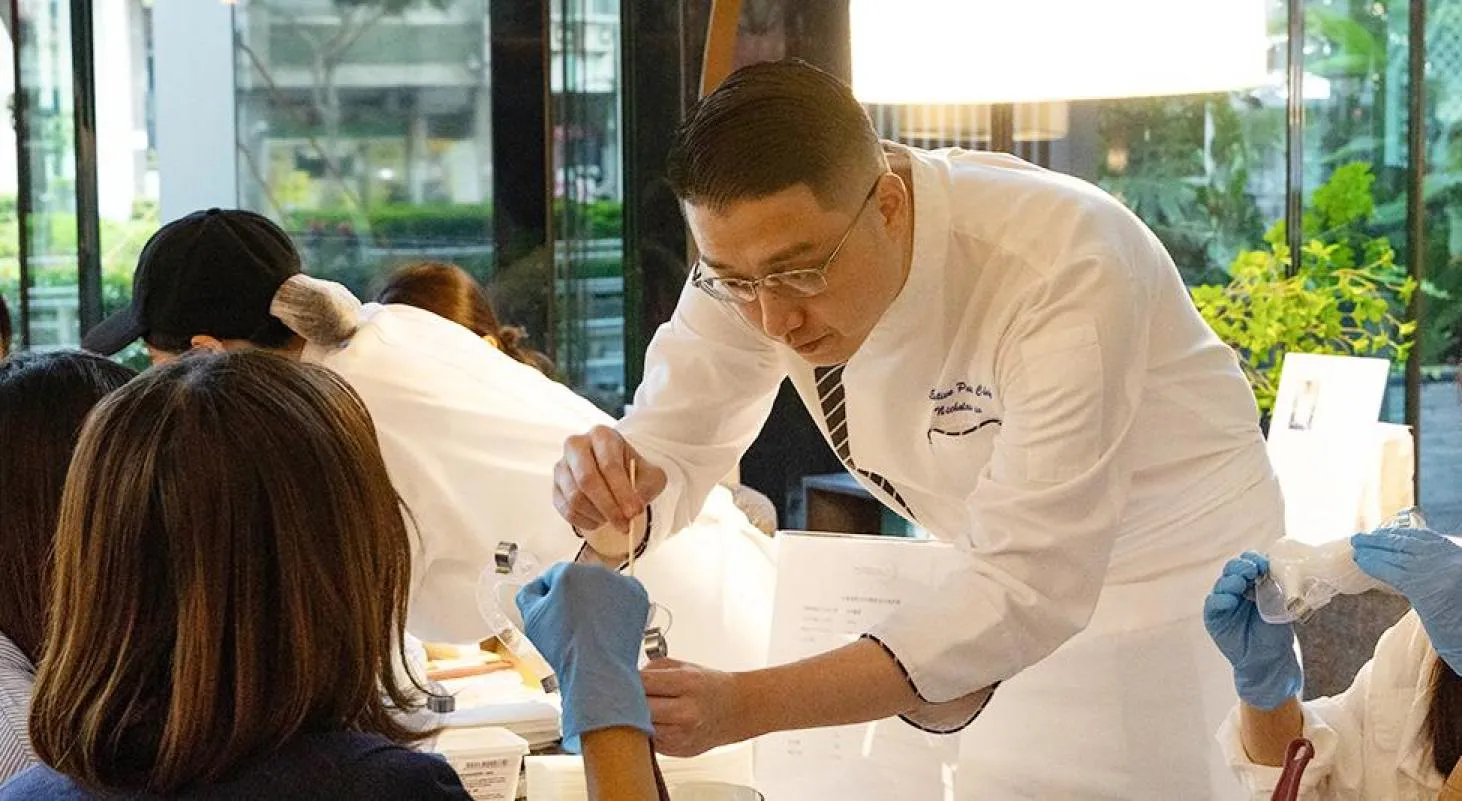 由日本金賞得主——劉靖晟主廚 Nicholas 一步步引導學員親手完成「花束」主題甜點作品,